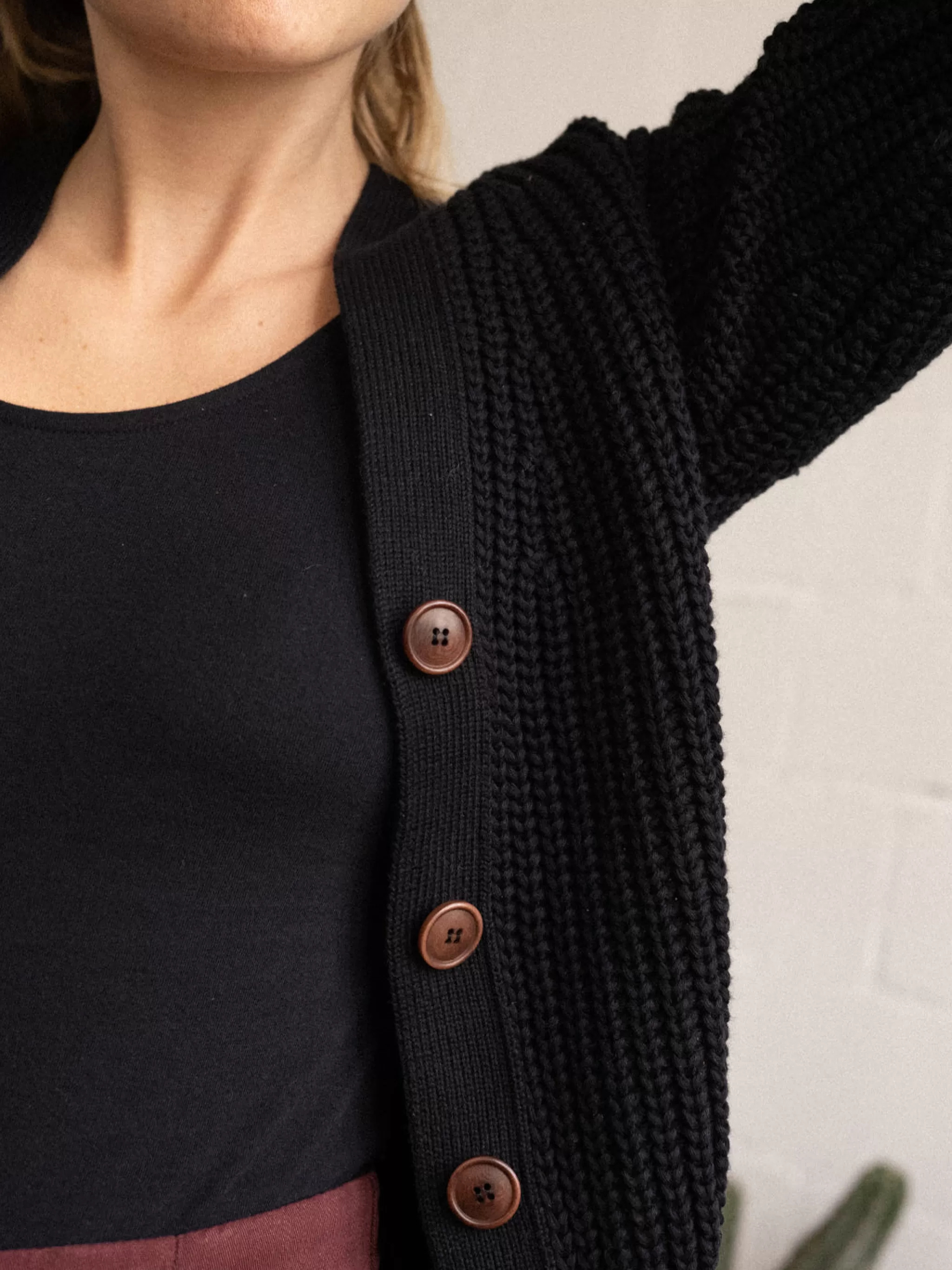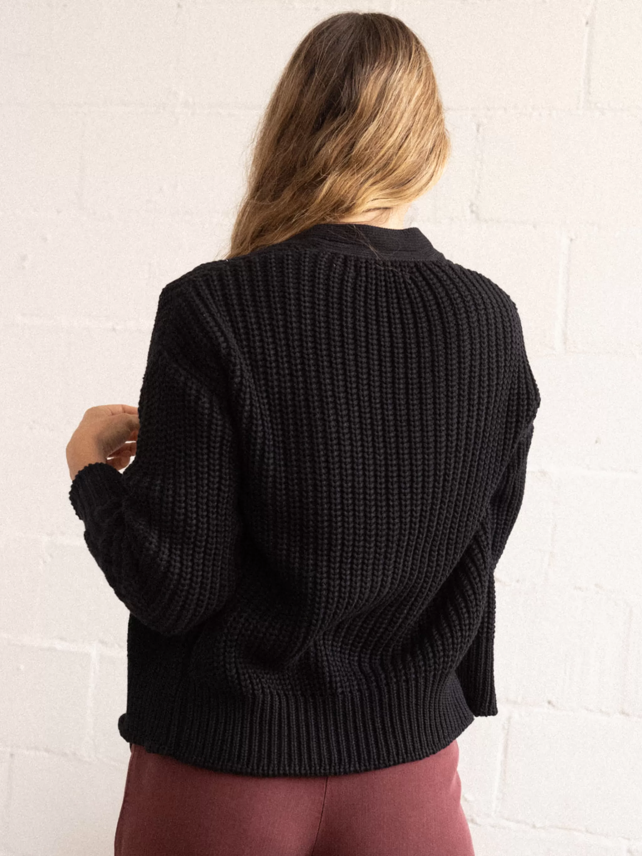 Les Cotes De Coton Biologique Les Plus Douces Et Les Gros Boutons Les Plus Ravissants S’Associent Pour Creer Le Cardigan Jan Mayen A Col En V, Qui Presente Des Cotes Plus Fines Contrastees Sur Son Encolure Et Sa Patte De Boutonnage.